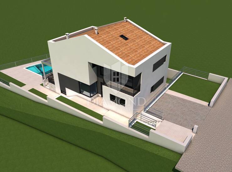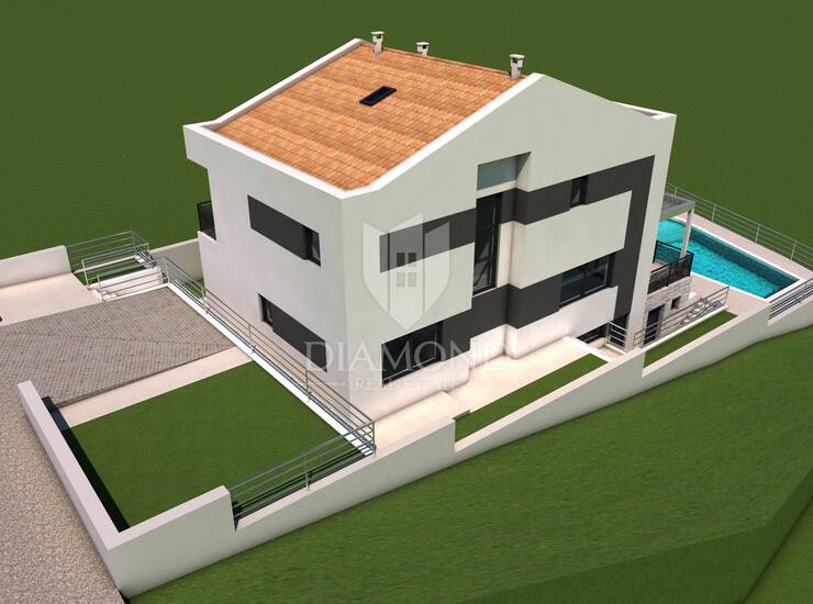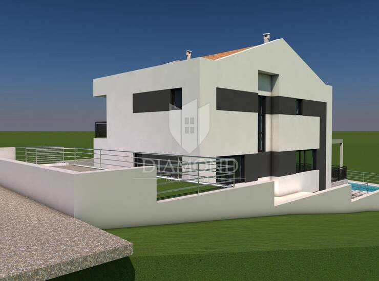 Na prodaju je atraktivno građevinsko zemljište površine 537 m², smješteno u mirnom naselju u bližoj okolici Rovinja. Građevinska dozvola je nedavno ishođena i vrijedi do 2028. godine, a uz nju je izrađen i projekt za modernu kuću s bazenom te pomoćnu građevinu.