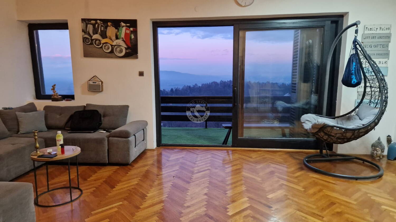Kuću je gradio renomirani arhitekt za vlastite potrebe te je savršeno ukomponirana u okoliš, uzimajući u obzir položaj terena kako bi uživanje u pogledu bilo jednako veličanstveno u stambenom prostoru i na terasi. Gradnja je vrlo kvaitetna, a prostorije vrlo logično organizirane.