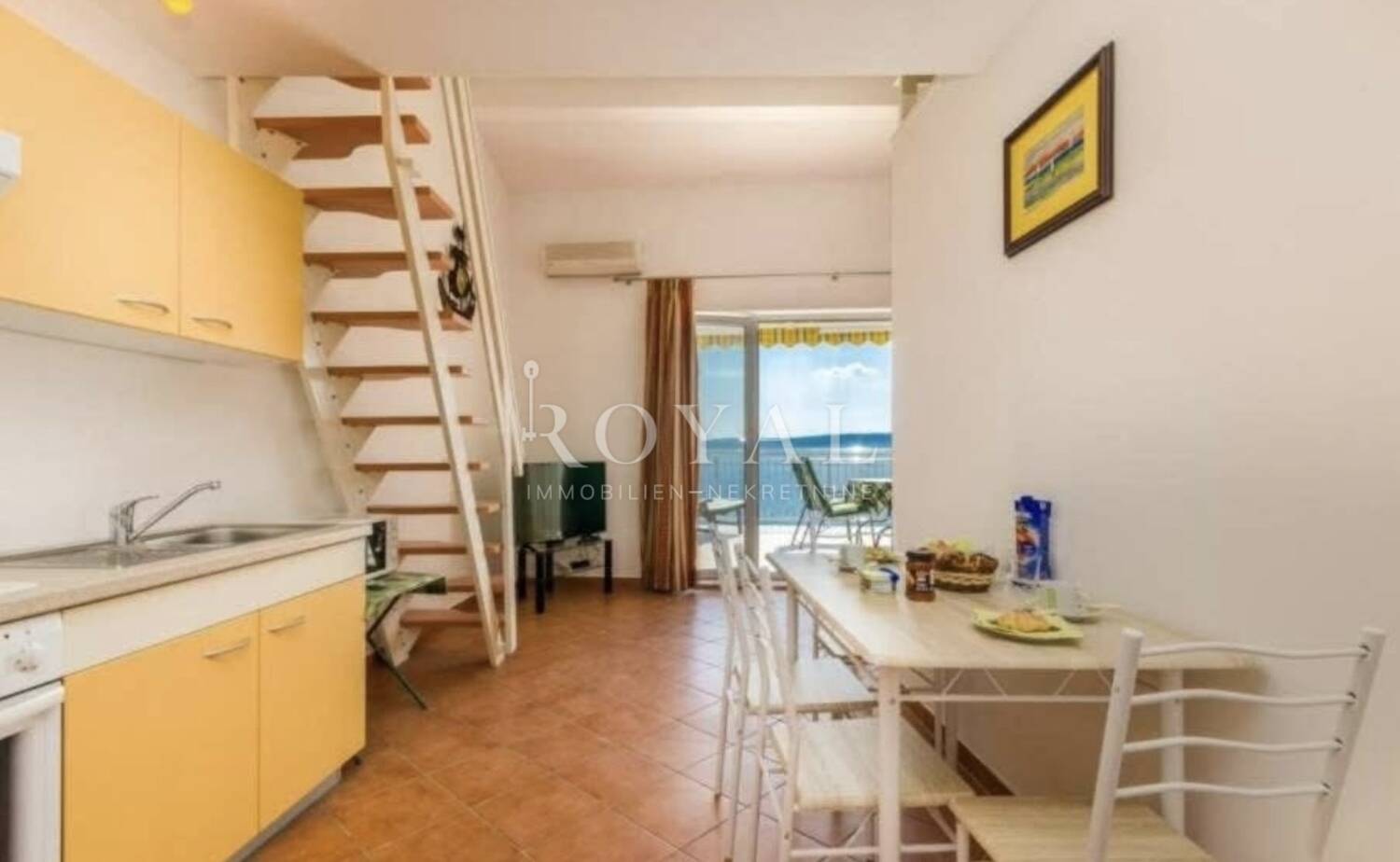 Stan se sastoji od kuhinje, kupaonice, dnevnog boravka, galerije te prostrane terase s otvorenim i očaravajućim pogledom na more.