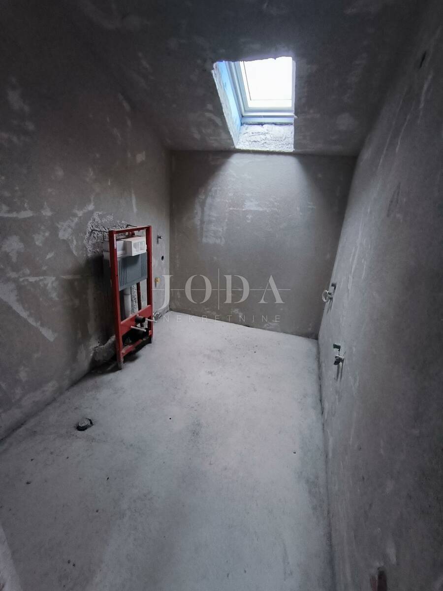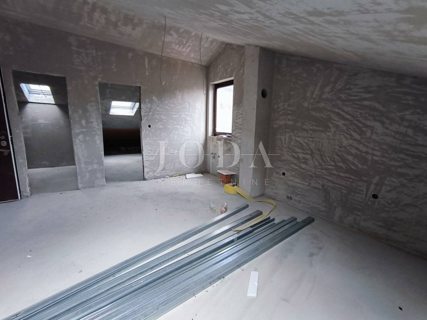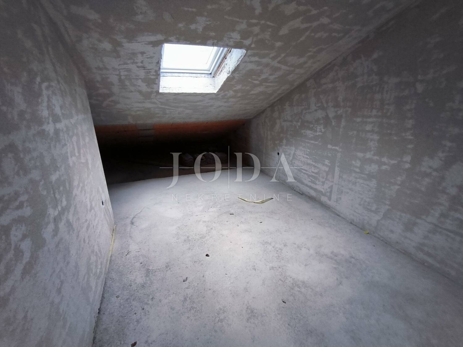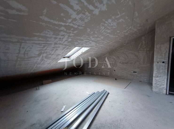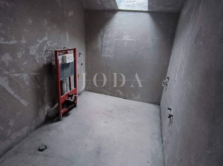 Stan je u roh bau fazi gradnje i kao takav se prodaje. Provedena struja, voda, kanalizacija, separator, instalacije za klima uređaje, keramika po stepeništu, vrata na drvarnici. Stan se nalazi u potkrovlju i sastoji se od kuhinje i dnevnog boravka, kupaonice i sobe, ukupne površine 48,70 m2 sa pripadajućim parkiralištem.