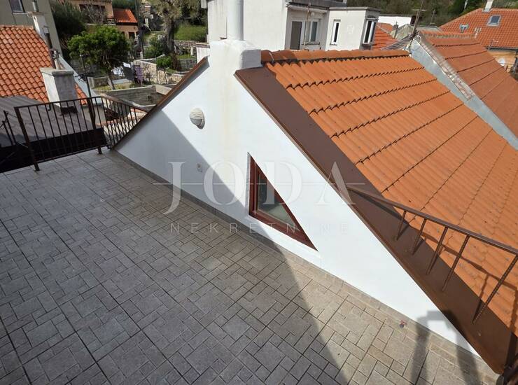 Unutarnje stepenice vode na kat gdje se nalaze tri spavaće sobe,ostava a vanjske stepenice vode na krovnu terasu.