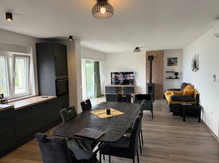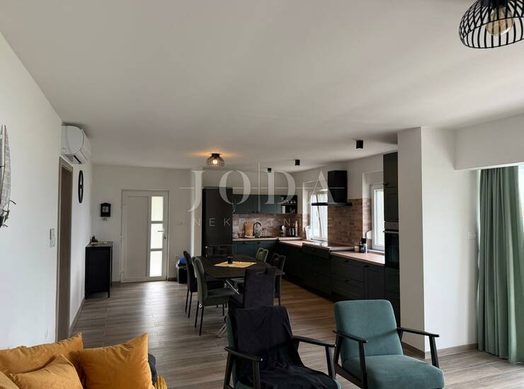 Unutrašnjost kuće nudi pet spavaćih soba i pet kupaonica, što osigurava dovoljno prostora i komfora za veću obitelj ili bavljenje turizmom. Dnevni boravci izlaze na prostrane terase i balkone idealne za opuštanje i druženja. Kuća se prodaje potpuno namještena, preuređena je i odmah spremna za useljenje.