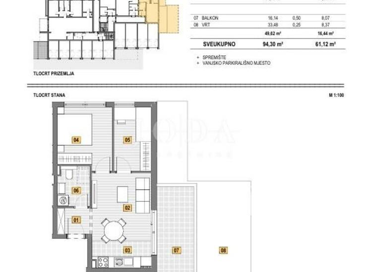 Uz stan je obavezna kupovina vanjskog parkirnog mjesta od 12,5m2 13000€ te spremišta u suterenu 8,000€.