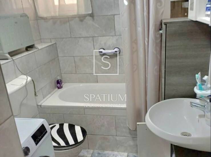 Nalazi se u visokom prizemlju uredno održavane stambene zgrade, površine 35m2.