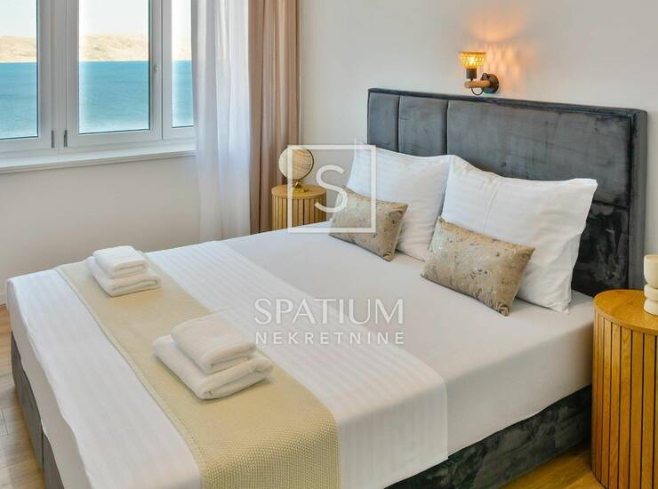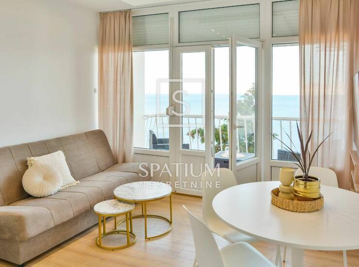 Sastoji se od ulaznog hodnika, kuhinje s blagovaonom i dnevnim boravkom, spavaće sobe, kupaone i lođe s otvorenim pogledom na more.