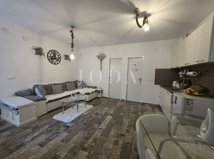 U ponudi je ugodan stan u prizemlju zgrade, smješten u samom centru grada, u neposrednoj blizini svih važnih sadržaja. Stan se sastoji od kuhinje s dnevnim boravkom, spavaće sobe i kupaonice.
