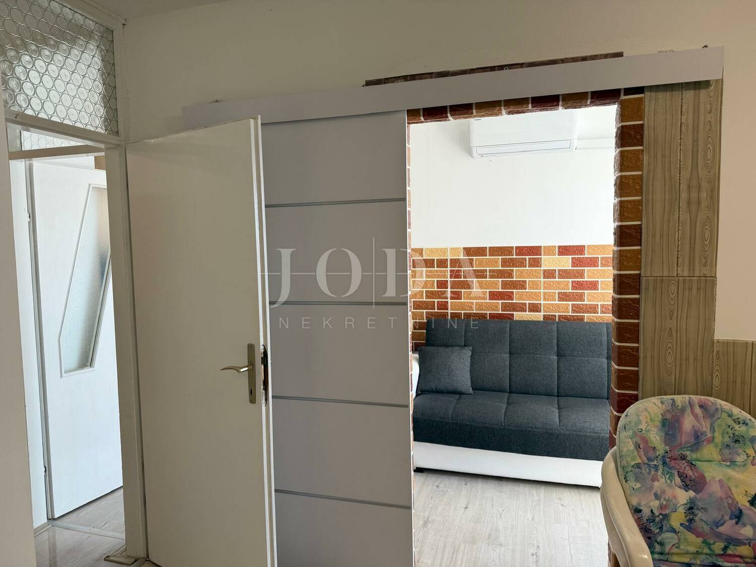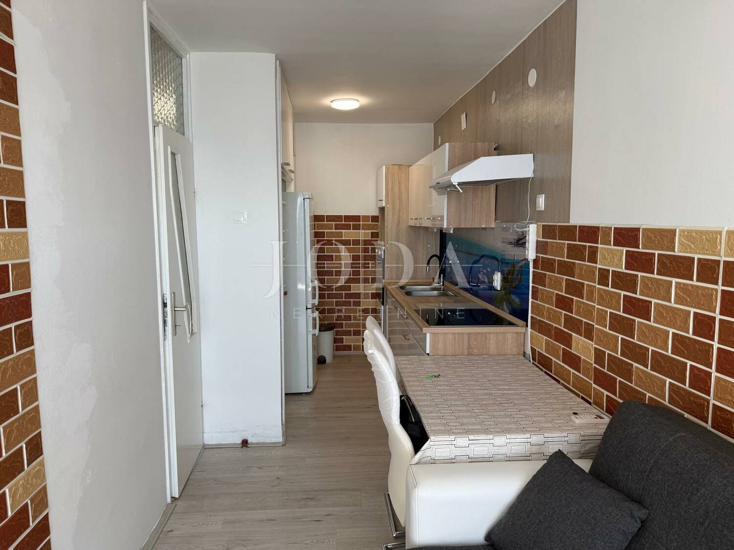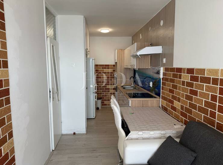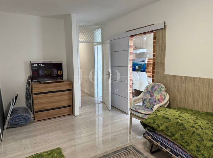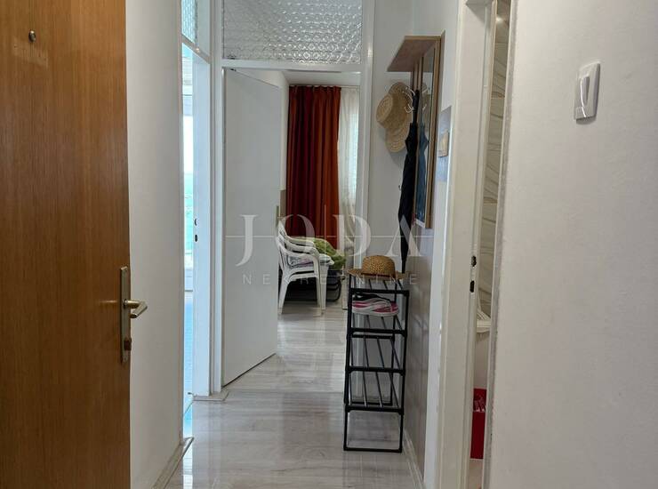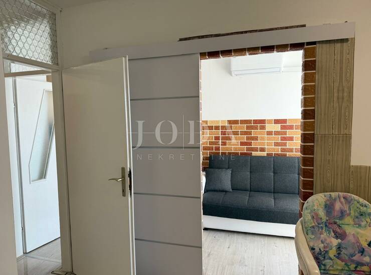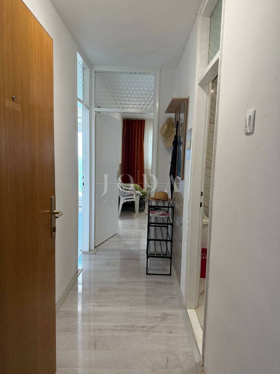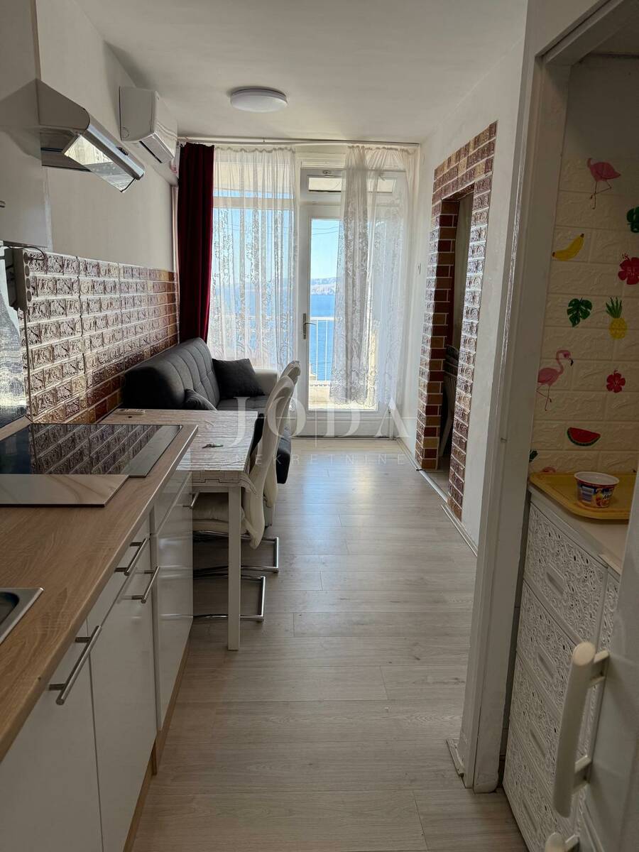 Stan u visokom prizemlju tj. razina 1. kata u urednoj odražavanoj zgradi. koji se sastoji od ulaznog hodnika, kupaone i wc-a, sobe i kuhinje sa balkonom sa kojega se pruža predivan pogled na more i grad. Stanu pripada i drvarnica. Prodaje se kompletno namješten i opremljen.