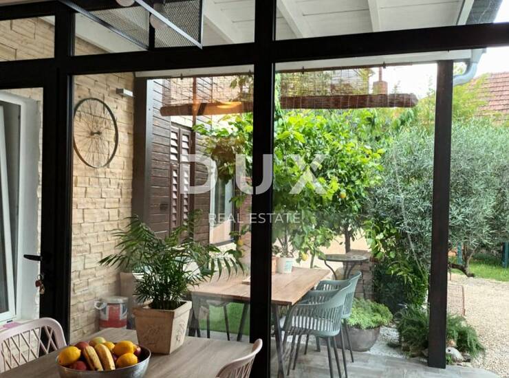 Prostrano dvorište oduševljava bogatstvom cvijeća, biljaka i drveća, a tu je i prostor za roštilj te uredno uređena vrtna kućica, savršena za opuštanje i uživanje na otvorenom.