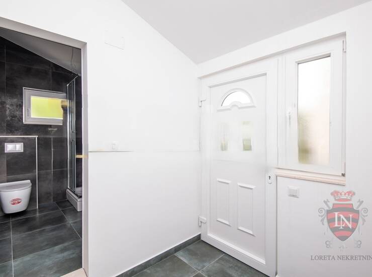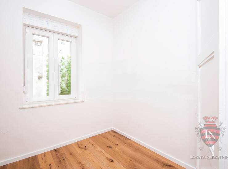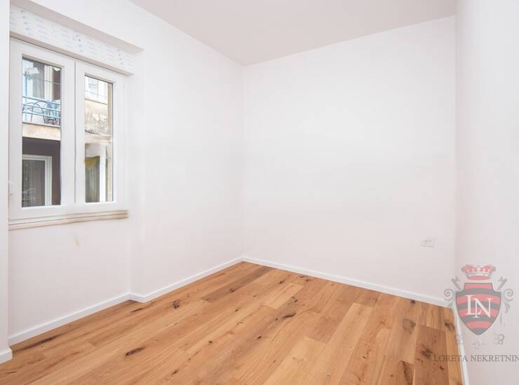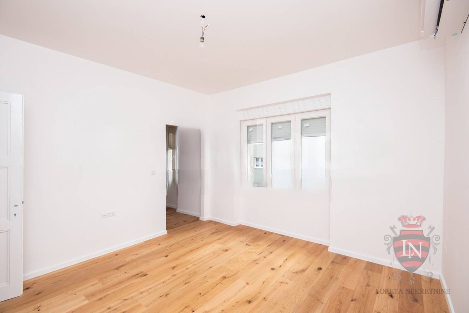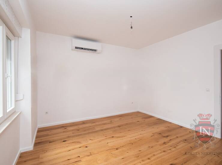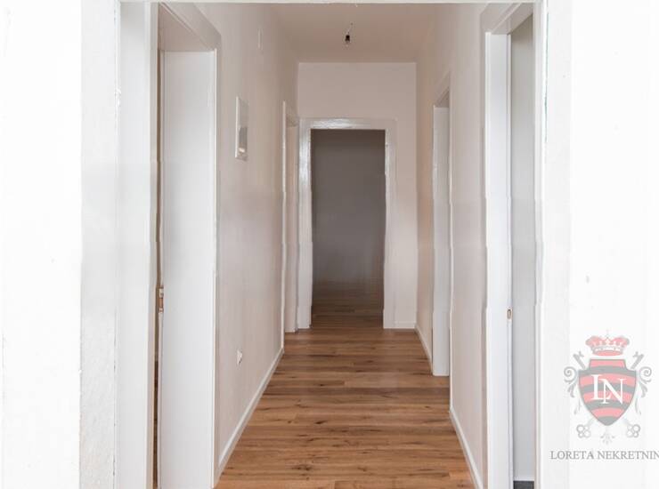 Na prodaju je kompletno renoviran stan, na prvom katu manje zgrade sa zasebnim ulazom na odličnoj lokaciji. Površine 67 m2, stan obuhvaća dvije spavaće sobe, kuhinju, dnevni boravak, kupaonicu, vešeraj, te hodnik. Ispod stepeništa je i malo spremište, a stanu pripada i kompletno potkrovlje s dodatnom neto površinom od 13 m2.