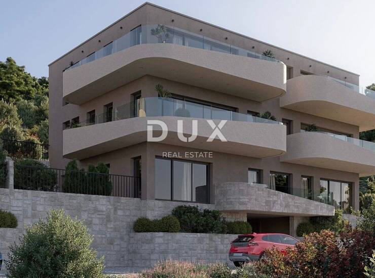 Projekt je osmišljen u modernom arhitektonskom izričaju koji spaja eleganciju kamena, stakla i suvremenih građevinskih materijala, stvarajući sklad luksuza i prirodnog okruženja. Stanovi odišu profinjenošću, kvalitetom i funkcionalnošću, a građeni su od vrhunskih materijala koji garantiraju dugotrajnost i udobnost stanovanja.