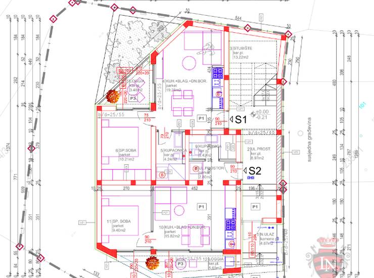 Stan S2 ima ulazni prostor, open space dnevni boravak, kuhinju i blagovaonicu, spavaću sobu, kupaonicu te lođu.