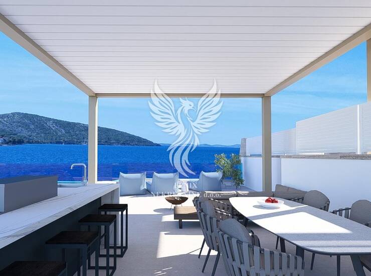 A beautiful apartment for sale in Grebastica, first row to the sea. Grebaštica is a village in Šibenik-Knin County, located in the bay of the same name, 14 km south of Šibenik. It is one of the deepest bays in Šibenik-Knin County, which attracts sailors throughout the year. The future building is located in a beautiful bay, and is very attractive in appearance, as well as the fact that it is located in the first row to the sea, and each apartment has its own swimming pool, beautiful terraces, and