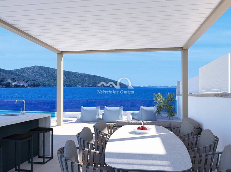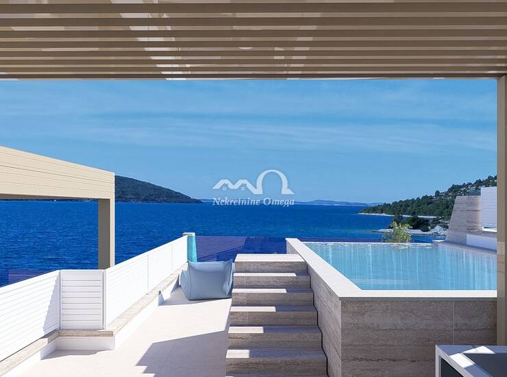 Prodaje se luksuzni trosobni stan površine 110,69 m², smješten n drugom katu ekskluzivne novogradnje na samo 20 metara od mora u turističkom mjestu Grebaštica, nadomak Šibenika. Stan pruža panoramski pogled na more i okolne otoke, a privatni bazen čini ovu nekretninu jedinstvenom na tržištu.