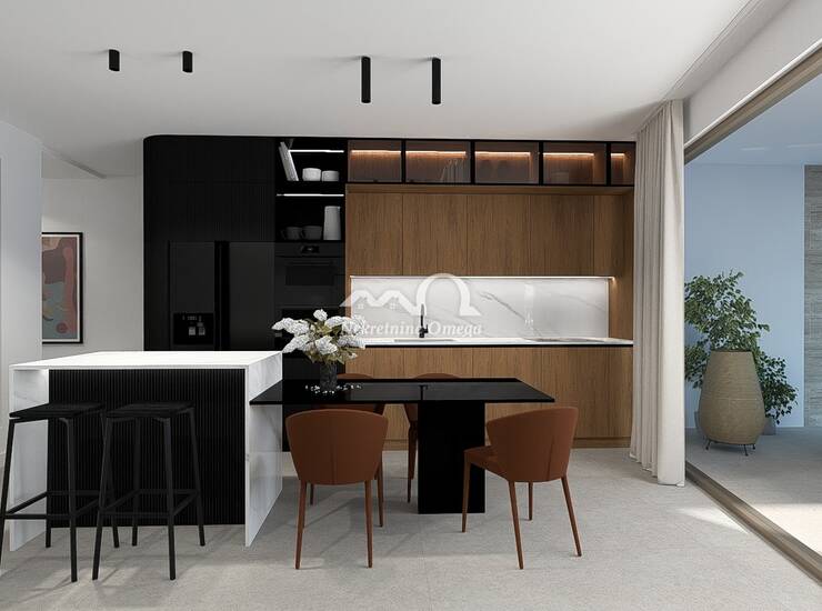 Prostrani open space dnevni boravak, kuhinja i blagovaonica s izlazom na terasu s privatnim bazenom