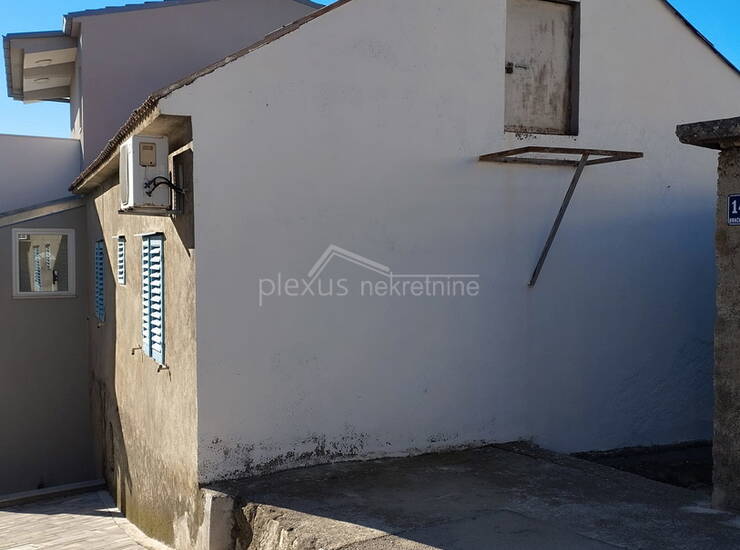 Na prostoru prizemljla je stan u kojem se nalazi konoba sređena u dalmatinskom stilu, (idealna za druženja tijekom cijele godine) te jedna soba koja nije sređena niti definirana, ali bi se uz manja ulaganja mogla dobiti jedan veća ili dvije manje sobice. Uz kuću, (kao dodatni objekt od 7m2) smještena je pomoćna kuhinja s tradicionalnim kominom koja pruža mjesto za pripremu roštilja i dugih kulinarskih specijaliteta . Plato uz kuću pruža dodatno mjesto za opuštanje tijekom ljetnih mjeseci.