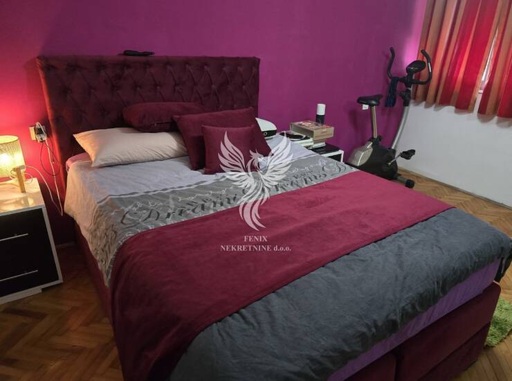 Stan se sastoji od hodnik, dnevnog boravka, kuhinje s blagovaonom, dviju prostranih spavaćih soba, kupaonice i balkona. S obzirom na izvrstan tlocrt, stan ima dosta i dodatnog potencijala oko uređenja. Stan se prodaje sa namještajem.