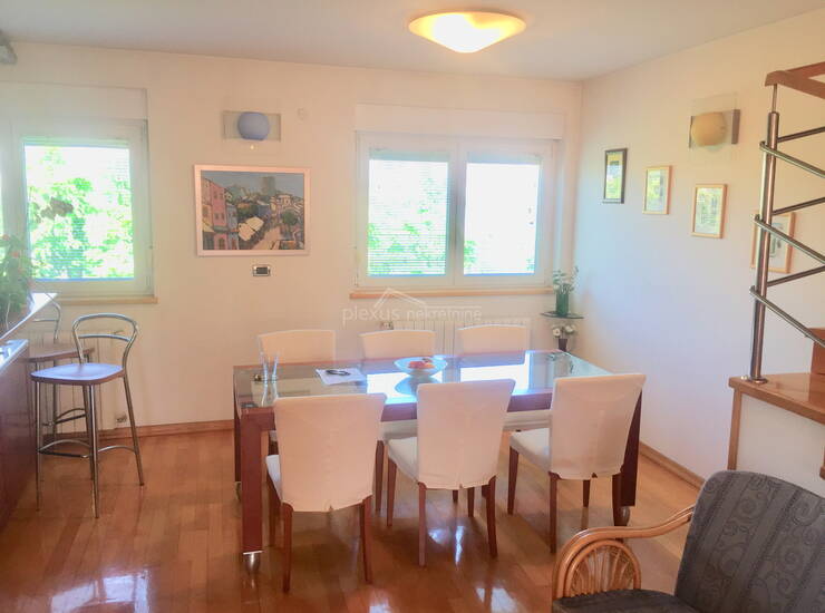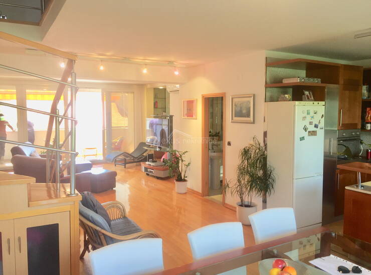 Prodajemo dvoetažni četverosobni stan površine 149 m2 koji se nalazi na predjelu Dobri. Stan je položen na trećem i četvrtom katu zgrade bez lifta. Nekretnina se nalazi na odličnoj lokaciji (par minuta pješice od samog centra grada). U blizini su svi potrebni sadržaji za život. Stan je položen na dvije etaže. Na trećem katu je etaža površine 75.85 m2 koja se sastoji od dnevnog boravka, blagovaonice, kuhinje, wc-a i balkona. Kuhinja se nalazi na sjeveroistoku dok je dnevni boravak i balkon (djelomični pogled na Marjan) na jugozapadnoj strani. Zbog svoje orijentacije stan je osunčan i svijetao. S donje etaže se stepenicama penje na gornju etažu površine 73.32 m2. Na gornjoj etaži se nalaze četiri sobe, wc i kupaonica i balkon. Gornja etaža je cijela na jugozapadnoj strani. Na svakoj etaži se nalazi etažno centralno grijanje i klima uređaji. Iako se nekretnina nalazi u neposrednoj blizini samog centra grada ima svoju intimu i mir. Osim za obiteljski život stan se može koristiti i u turističke svrhe. Stan ne zahtjeva nikakva ulaganja. Vlasništvo uredno.