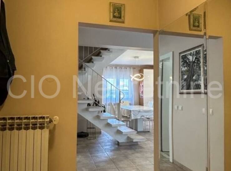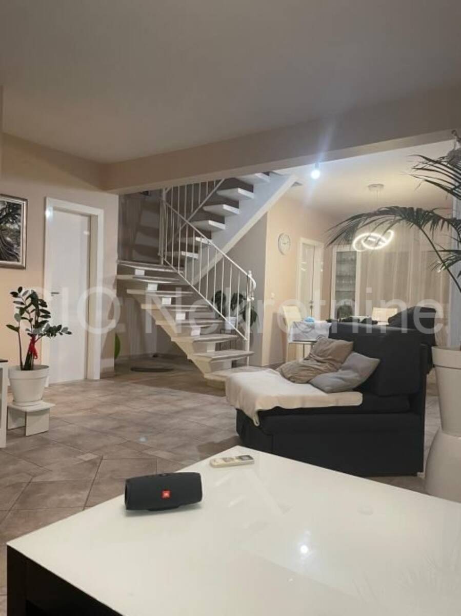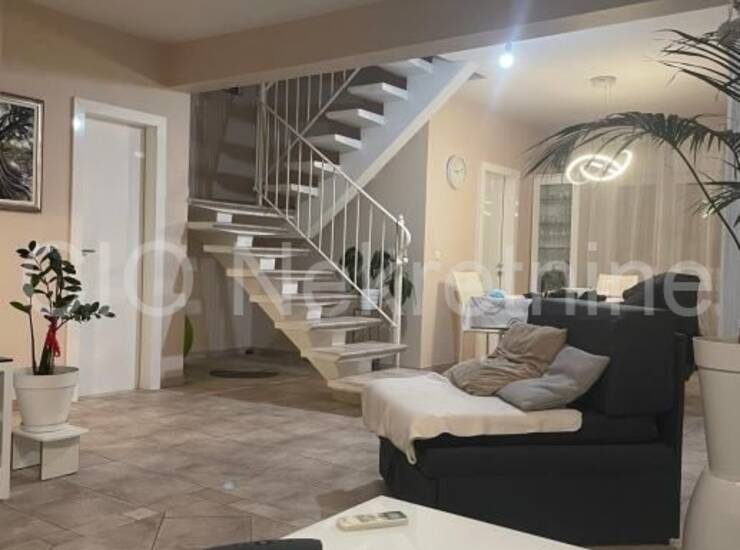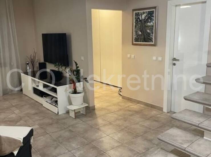 Nekretnina se sastoji od ulaznog dijela, hodnika, kuhinje s blagovaonicom, ostave, zatvorene lođe te malog wc-a na donjoj etaži sa koje se unutarnjim stepeništem ide na gornju etažu koja se sastoji od tri spavaće sobe, prostrane kupaonice, praonice te balkona.