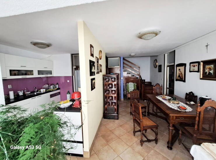 Prodajemo dvoetažni trosobni stan površine 112 m2 na Splitu 3. Stan se sastoji od tri spavaće sobe, balkona, kupatila s wc-om na gornjoj etaži te maloga wc-a, ostave, kuhinje, blagovaonice, dnevnog boravka, velike lođe koja je zatvorena i pretvorena u stambeni prostor, te vrta u prizemlju. Zbog zatvaranja lođe dobivena je dodatna kvadratura. Cijeli stan je okrenut na jug i nalazi se u mirnom okruženju.