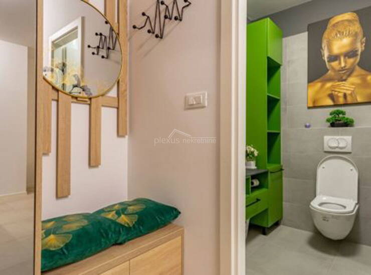Grijanje je riješeno na struju, što omogućuje fleksibilnost u upravljanju potrošnjom energije. Posebna pogodnost ovog stana je jacuzzi koji pruža dodatnu razinu udobnosti i luksuza.