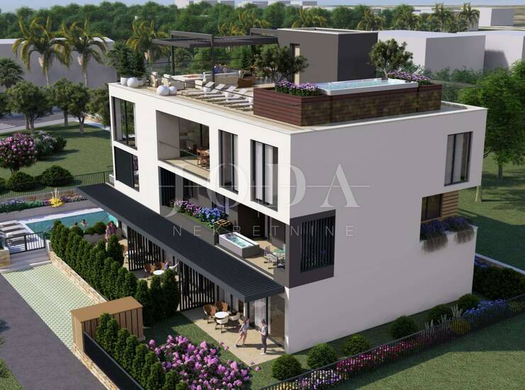 U tijeku je izgradnja luksuznih stambenih zgrada na spektakularnoj lokaciji, prvi red do mora, sa po 3 i 6 stambenih jedinica. Stanovi u prizemlju imaju vlastite bazene, a penthouse stanovi vlastite krovne terase s pogledom na more .
