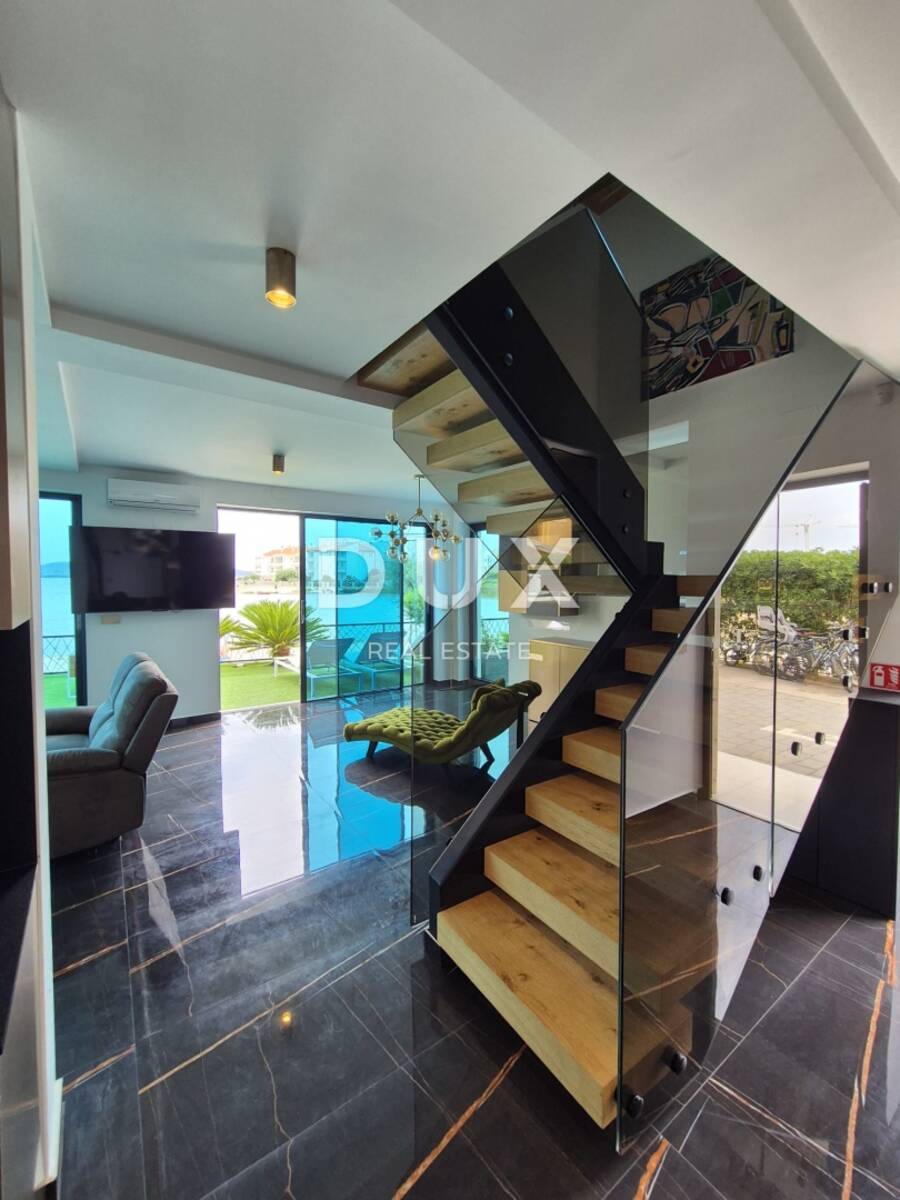 ZADAR, SUKOŠAN - Luksuzno namješten troetažni stan prvi red do plaže!