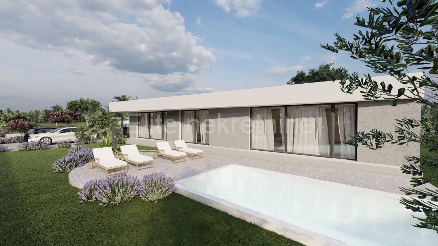 Modernog i jednostavnog dizajna s dvorištem od 624m2, s bazenom