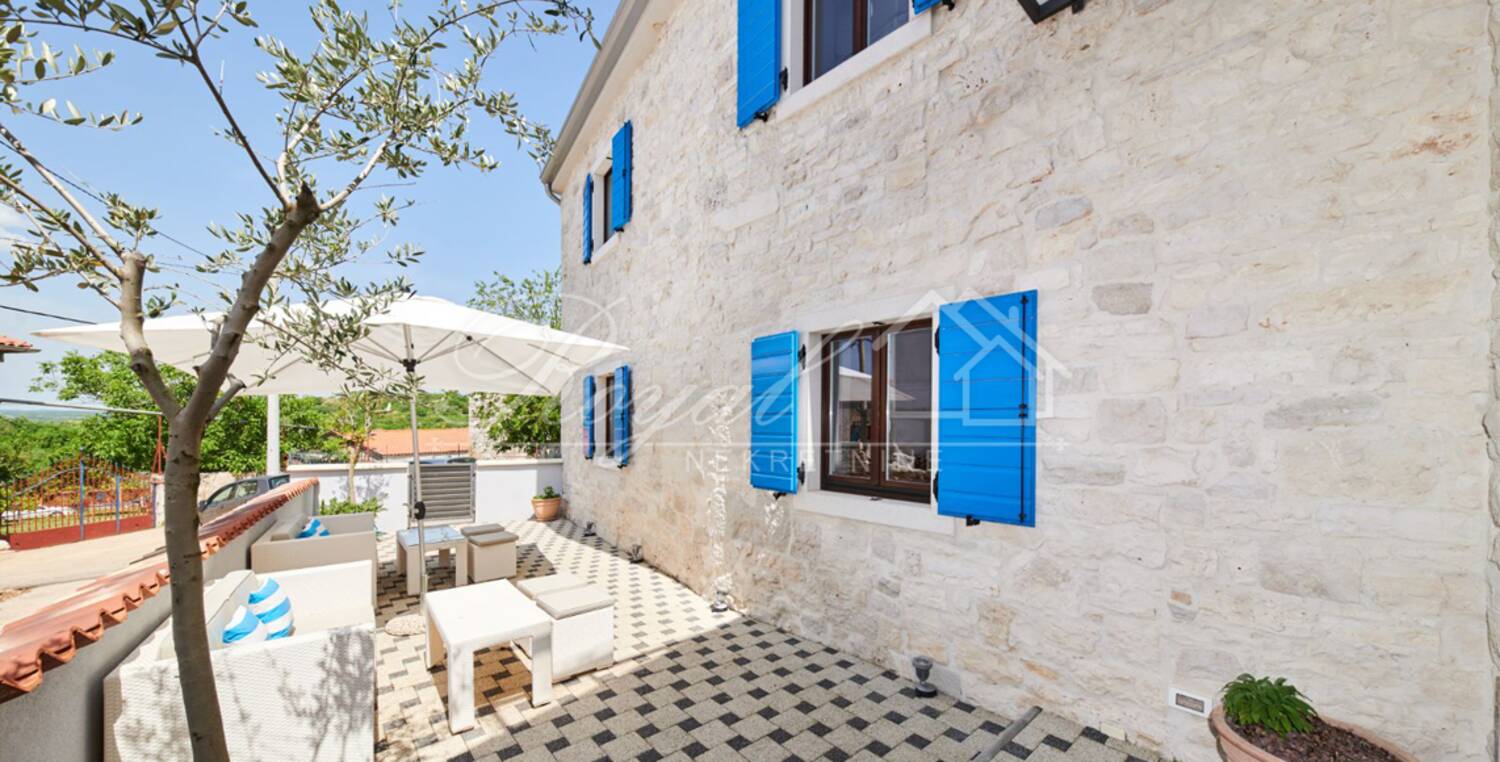 Vila je opremljena modernim uređajima, plavo obojene istarske grilje koje upotpunjuju starinski štih, neizostavan grijani bazen sa roštiljem,