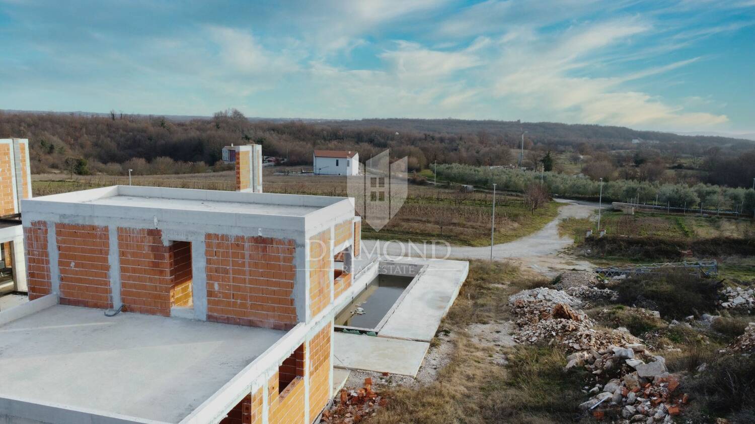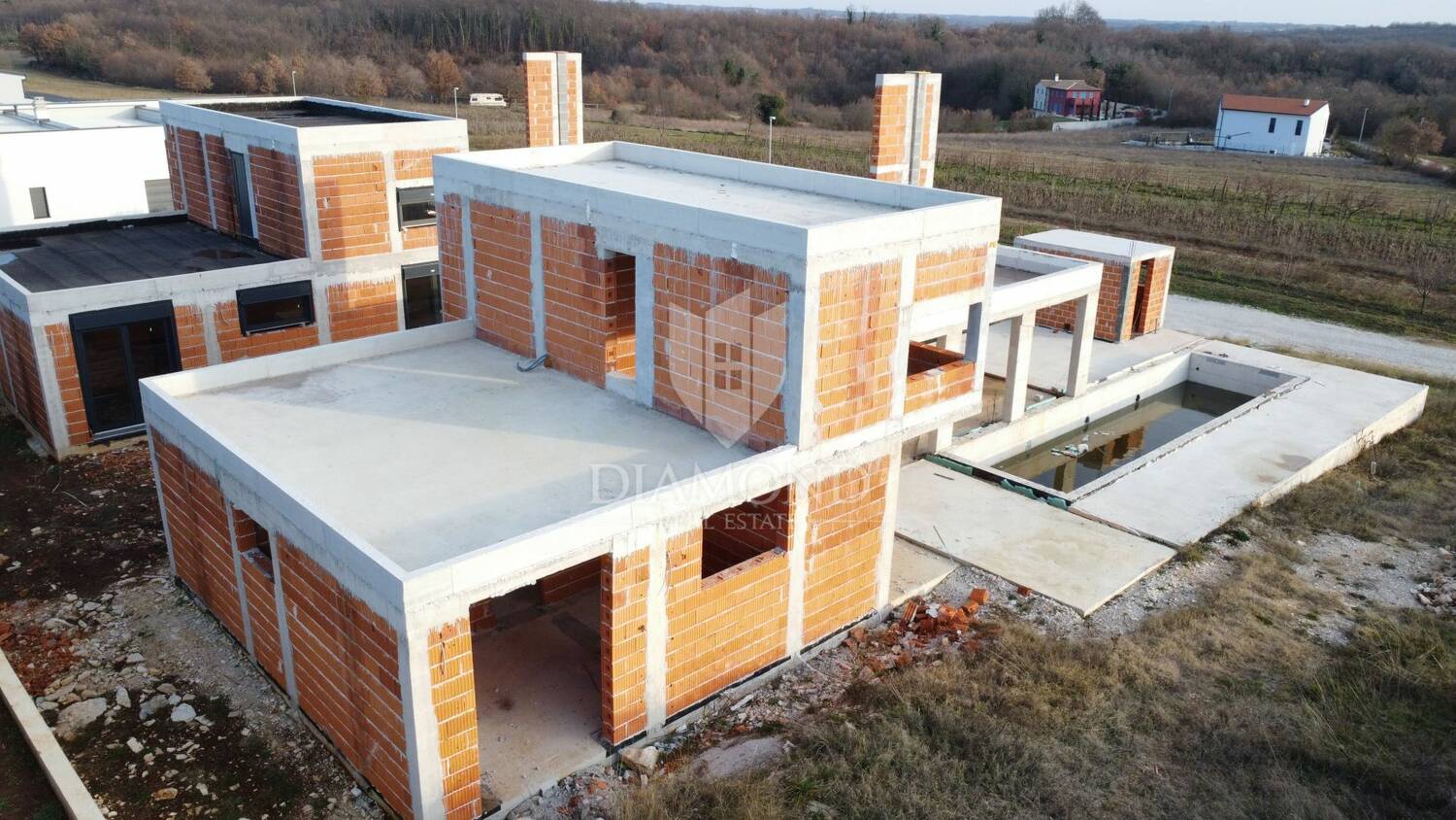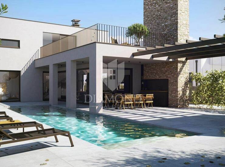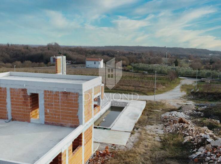 Istra, Poreč, Sveti Lovreč – arhitektonska vila s plivačkim bazenom (rohbau)