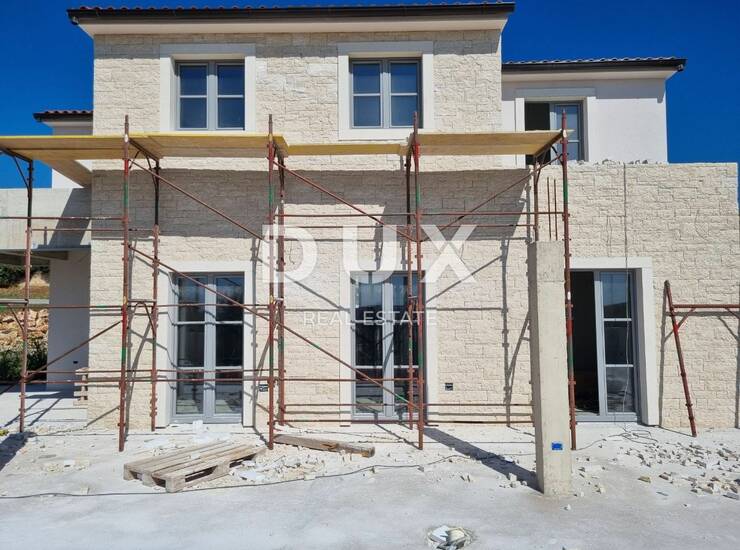 Na parceli od 1171 m2 nalazi se novogradnja sa bazenom i garažom stambene i korisne površine 303,10 m2 uključujući i garažno mjesto. Čista stambena površina kuće je 210,51 m2, garaža je korisne površine 31,35 m2. Osim toga, tu je i korisna površina od oko 61,24 m2. Osim raznih balkona i natkrivenih terasa, vila nudi sunčalište od dodatnih 92,59 m2 oko gotovo 10 m dugog bazena, koji je zamišljen kao pravi preljevni bazen okrenut prema moru.