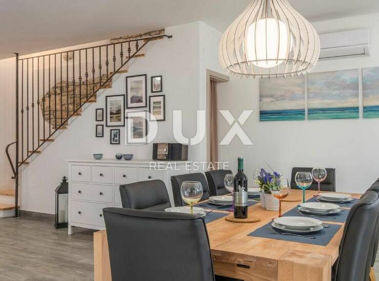 Vila se prostire na 142 m² stambene površine, a njezina unutrašnjost savršeno kombinira rustikalne elemente i suvremeni dizajn.