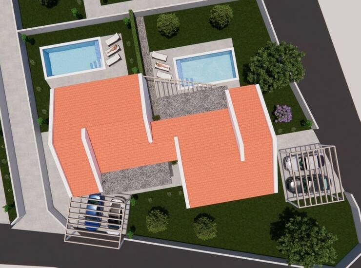 Cca. 15 km od Poreča, prodaje se prizemnica s bazenom u novogradnji. Nekretnina se nalazi na rubu građevinske zone u manjem istarskom mjestu na iznimno mirnoj lokaciji, udaljena ca 6 km od mjesta sa svim potrebnim sadržajima za svakodnevni život. Kuća ima 100 m2 površine i sastoji se od prostranog ulaznog hodnika koji vodi prema otvorenom dijelu kuće gdje se smještaju kuhinja, blagovaona i dnevni boravak. Tri udobne spavaće sobe, od kojih jedna ima vlastitu kupaonicu te dodatna kupaonica. Iz dnevnog prostora, vrata vode na prostranu natkrivenu terasu koja vodi u očaravajući vrt s bazenom od 25 m2, opremljenim sunčalištem i vanjskim kaminom. Grijanje: podno grijanje, klima uređaji u svakoj sobi i dnevnom prostoru. Također, postoji mogućnost ugradnje kamina na drva u dnevnom boravku. Podovi će biti obloženi visokokvalitetnim keramičkim pločicama ili parketom, ovisno o željama kupca. Ova nekretnina prodaje se po sistemu "ključ u ruke", što znači da će budući vlasnik dobiti potpuno završenu kuću bez ikakvih dodatnih ulaganja.