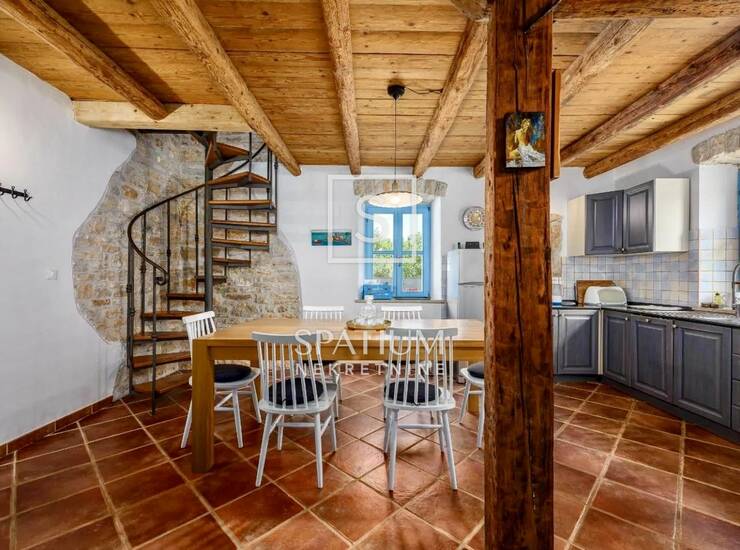 SV. LOVREČ – OKOLICA, u ponudi je autohtona istarska kamena kuća s bazenom, idealna za ugodan cjelogodišnji boravak ili kao investicija za turističko iznajmljivanje. Smještena je na prostranoj okućnici površine 998 m2, dok sama kuća raspolaže s ukupno 110 m2 korisne stambene površine.