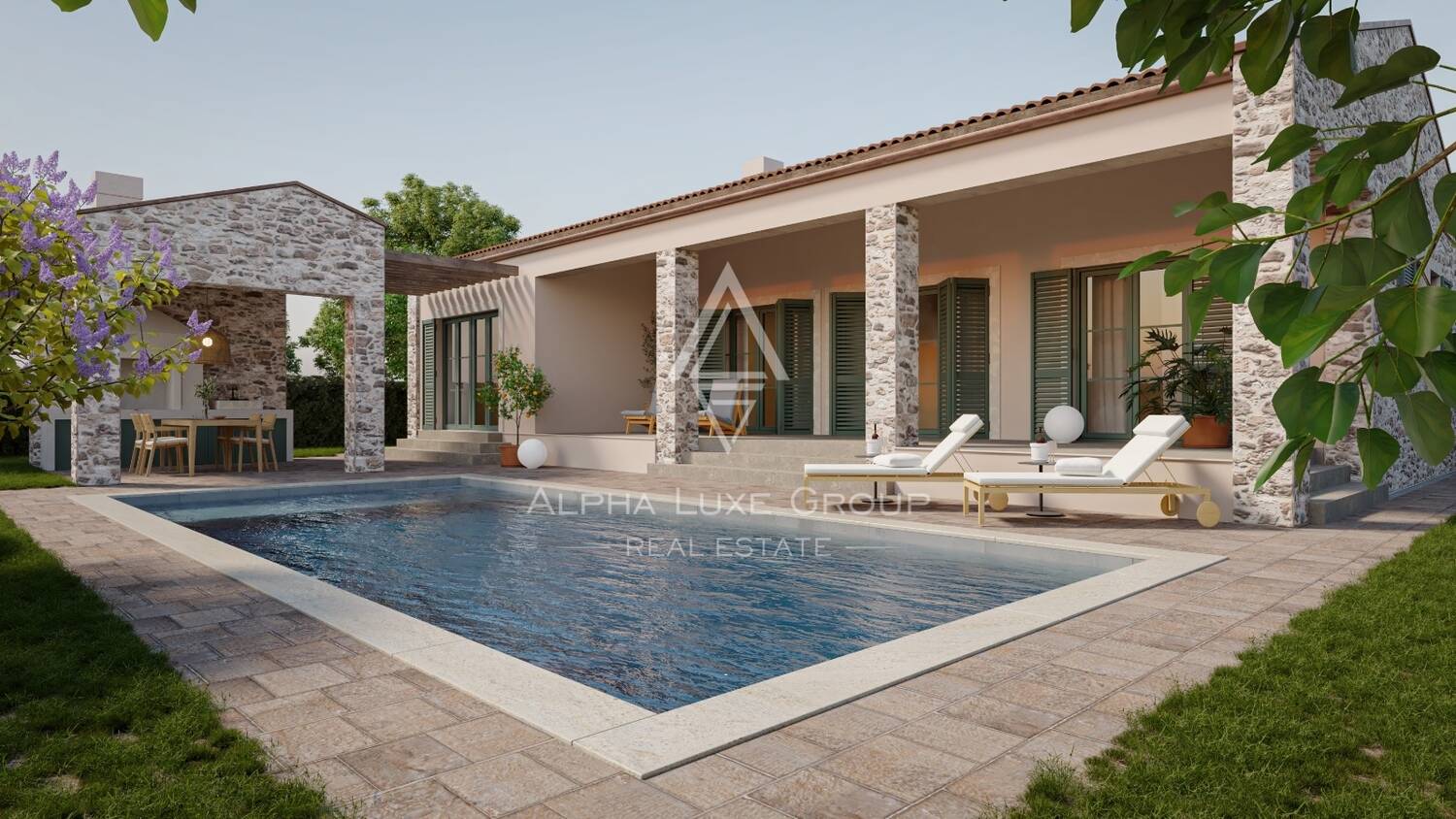 Planira se izgradnja atraktivne prizemnice s ljetnom kuhinjom, bruto površine 186,85 m2 i bazenom, 41,36 m2.