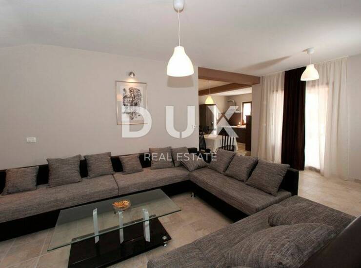 Samo 15 minuta vožnje od mora i prvih plaža na predivnoj lokaciji okruženoj netaknutom prirodom, na 600m okućnice, izgrađena je ova predivna kuća sveukupne površine 240 m2.