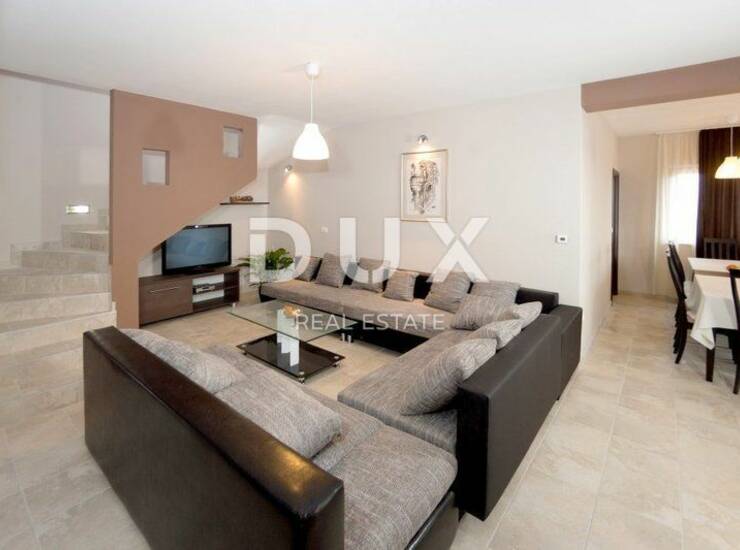 Samo 15 minuta vožnje od mora i prvih plaža na predivnoj lokaciji okruženoj netaknutom prirodom, na 600m okućnice, izgrađena je ova predivna kuća sveukupne površine 240 m2.