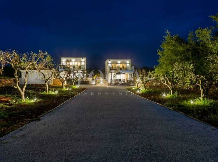 S obzirom da se radi o novogradnji, kuća je u odličnom stanju te redovito održavana. Vila je neto površine 130 kvadrata, gornja terasa ima 32, a donja natkrivena 20 kvadrata na koju se nastavlja sunčalište s bazenom od 30 kvadrata. Kuća je položena na parceli od 890 m2, okružena živicom te maslinama. Dvorište je osvijetljeno te ima ugrađeni sustav navodnjavanja.