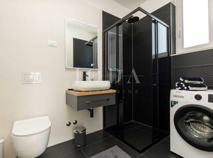 Prva etaža sastoji se od ulaznog prostora, open space kuhinje s otokom i prostorom za blagovanje te dnevnog boravka, spavaće sobe, kupaonice, spremišta, tehničkog prostora. Druga etaža sastoji se od ulaznog prostora, dvije spavaće sobe, svaka sa
