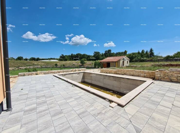 Prodaje se kuća, Svetvinčenat. Prizemlje kuće je veličine 100m2 dok je kat 90m2. Kuća se sastoji od tri spavaće sobe te svaka soba ima svoje kupatilo, u kući se nalaze dva dodatna toaleta, kuhinja, blagovaonica, dnevni boravak te veliki bazen. Kuća će biti opremljena toplotnim dizalicama kroz sve prostorije. Klime će se nalaziti u svakoj prostoriji. Uz kuću dolazi i okućnica veličine 1036m2.