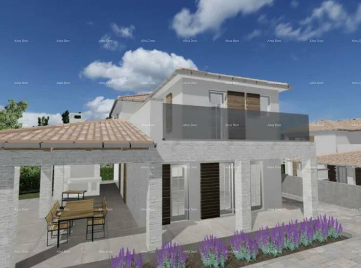 Nudimo dvije kuće u malom i mirnom mjestu . Kuće su istog dizajna te imaju stambenu površinu od 155 m2 i 160 m2 te ograđenu okućnicu od 497 m2 na kojoj se nalazi bazen i dva parkirna mjesta. Prizemlje vile sastoji se od dnevnog boravka i 3 spavaće sobe sa svojom kupaonicom, wc-om, kuhinjom i dnevnim boravkom sa izlazom na veliku natkrivenu terasu na kojoj se nalazi ljetna kuhinja i produžetak bazena. Unutarnje stepenice vode na prvi kat koji se sastoji od još 3 spavaće sobe, svaka soba ima svoju kupaonicu i 1 wc, ali ima i kupaonicu na natkrivenoj terasi (koja se može zatvoriti ako kupac želi dobiti još jednu spavaću sobu). Grijanje vile je etažno, podno.