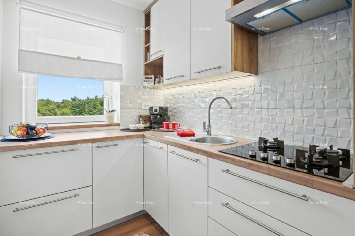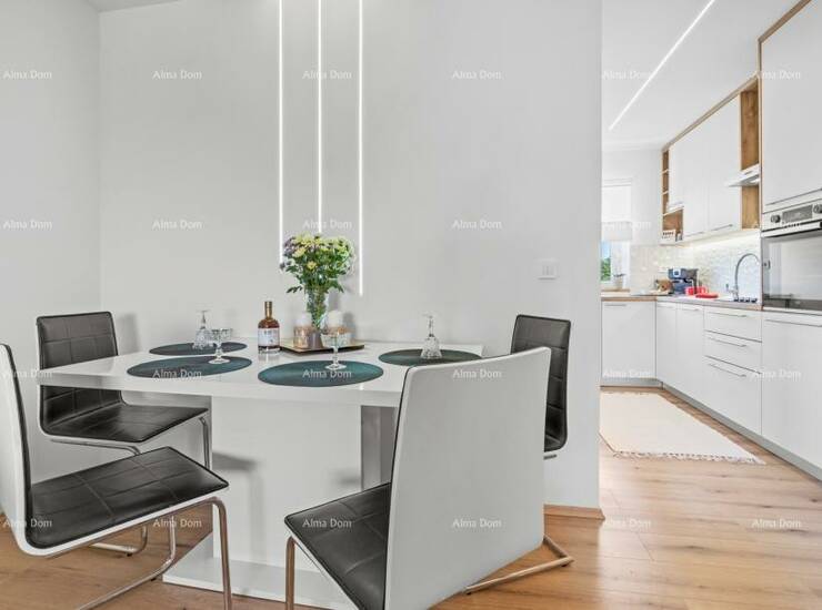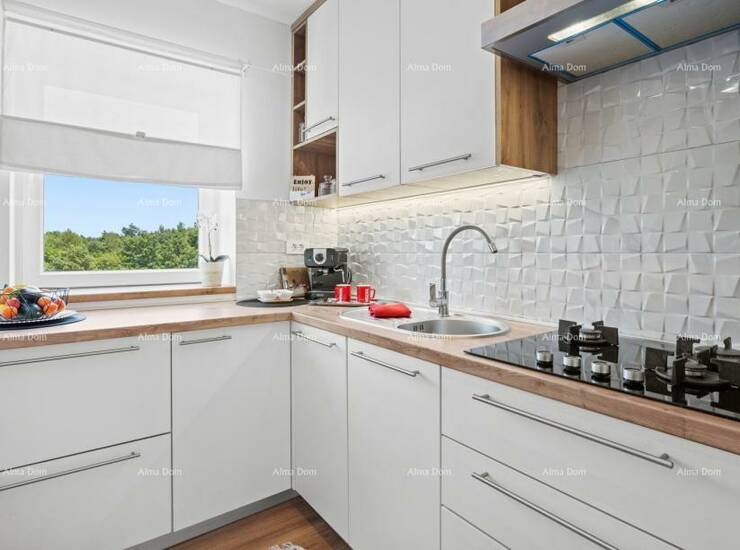 Na katu je potpuno uređen stan od 90 m2 sa pogledom na more.