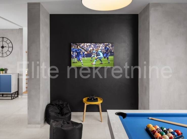 Sastoji se od prizemlja i 1.kata.U prizemlju se nalazi kupatilo, kuhinja, dnevni boravak s blagavaonom koji ima izlaz na vanjsku terasu i dvorište gdje se smjestio bazen veličine 34m2.Na katu se nalaze 3 spavaće sobe sa kupatilima i izlaskom na terasu gdje se pruža predivan pogled na prirodu.