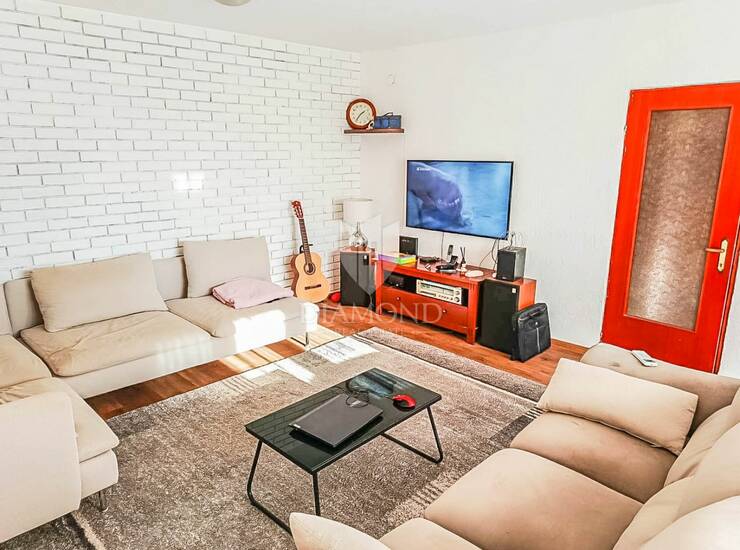 Kuća je funkcionalno raspoređena i pruža puno prostora za obiteljski život i različite stilove korištenja. U prizemlju se nalazi predulaz, kuhinja s blagovaonicom i kupaonica. Na katu su tri prostrane spavaće sobe, jedna dodatna prostorija pretvorena u prostrani walk-in ormar te još jedna kupaonica. Na istoj etaži nalazi se i dnevni boravak, kao i posebno uređena prostorija koja je trenutno gaming room, što prostoru daje dodatnu fleksibilnost za radnu sobu, hobi prostor ili gostinjsku sobu. U mansardi je još jedna velika soba s izlazom na balkon, savršena kao master soba, studio ili mirni kutak za opuštanje. Tijekom 2025. godine obnovljeni su fasada i krov, kompletno je uređena unutrašnjos