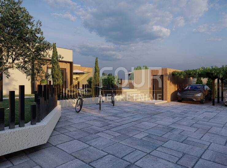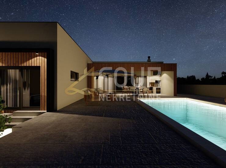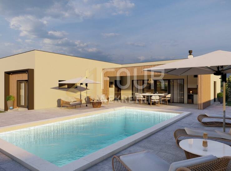 U mirnom istarskom mjestu nedaleko Svetvinčenta, prodaje se moderna prizemnica s bazenom i prekrasnim pogledom na more. Kuća je projektirana kao kvalitetna novogradnja čiji se završetak očekuje 2025./2026., a trenutačno je izvedeno oko 70% radova te se prodaje u postojećem stanju.