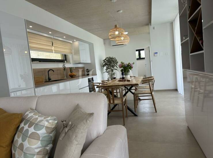 U prizemlju elegantnog otvorenog tipa nalazi se dnevni boravak sa kuhinjom i blagovaonom,