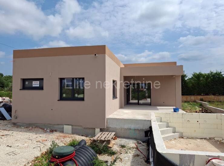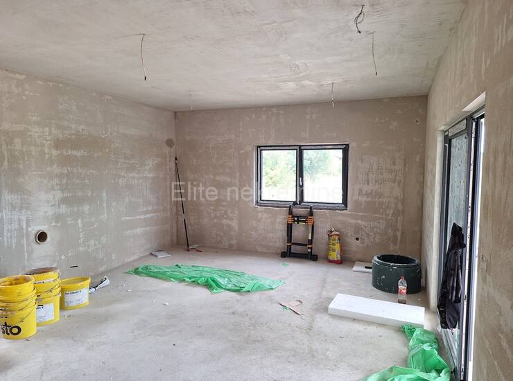 ISTRA, ŠTOKOVCI - Prodaja visokokvalitetne prizemnice sa bazenom!U mirnom naselju Bijažići na području centralne Istre smjestila se prizemnica sa bazenom ukupne stambene površine od 106m2 na okućnici od 548m2.Lokacijski ova prizemnica pruža mir jer je većinskim dijelom okružena prirodom.Koncept kuće određen je na sljedeći način:U tlocrtnom obliku L su smještene dvije spavaće sobe, ulazni hodnik, wc, kupatilo, vešeraj sa spremištem , dnevni boravak sa blagovaonicom i kuhinjom na konceptu open space.Investitor je koristio jako kvalitetne materijale u izgradnji kao šta su unutarnji i vanjski nosivi zidovi od "porotherm" opečnih blokova za koje je dokazano da doprinose energetskoj učinkovitosti Vašeg budućeg doma, ab gredama i stupovima.Fasada je termički izolirana falcanim stiroporom debljine 10 cm i glatkom žbukom. A stropnoj ab ploči iznad kata se predviđaju svi potrebni slojevi tkzv."ravnog neprohodnog krova": beton za nagib , parna brana , termoizolacija ,hidroizolacija i završna zaštita od insolacije (otporna na UV zrake) u svemu u skladu sa važećim tehničkim propisima i uputstvima proizvođača.Prozori i balkonska vrata opremljeni su PVC šestokomornim profilima i trostrukim termo izolirajućim staklom.Kao dodatni sadržaj napomenuli bi vanjski bazen veličine od 28m2 koji je u prvoj fazi.Grijanje je riješeno sustavom klimatizacije putem tri klime te predviđenim dimnjakom za peć na pelete ili drva.Nekretnina je ograđena betonskom ogradom koja vam daje sigurnost i željenu privatnost.