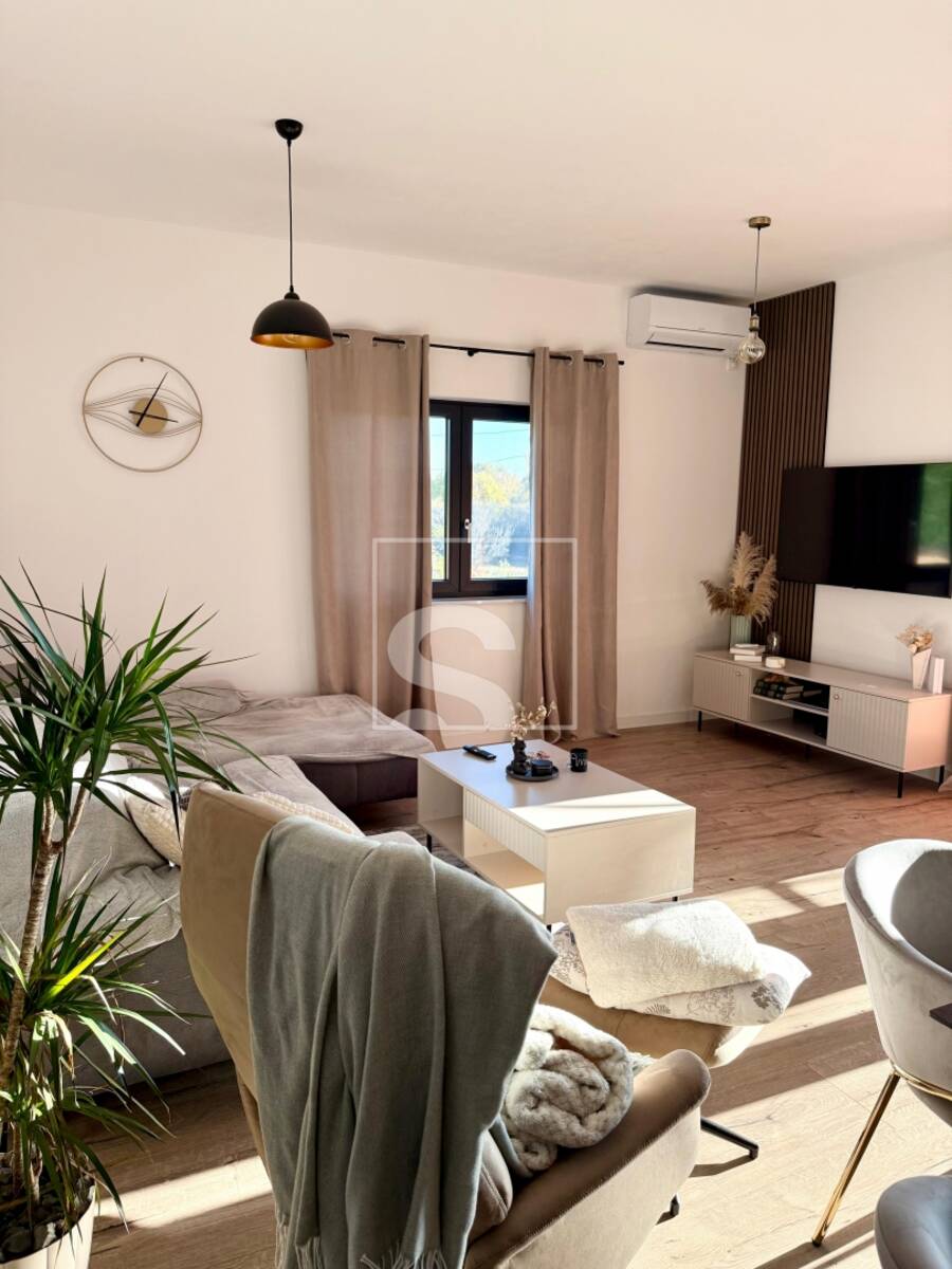 Na pola puta između Juršića i Svetvinčenta, u mirnom i ugodnom okruženju, smještena je moderna prizemnica stambene površine 106 m², na parceli od 548 m², uz asfaltiranu cestu. Kuća je pažljivo projektirana u funkcionalnom tlocrtu u obliku slova „L“, čime se prirodno odvaja dnevni dio od mirne, spavaće zone, osiguravajući maksimalnu udobnost i intimu.
