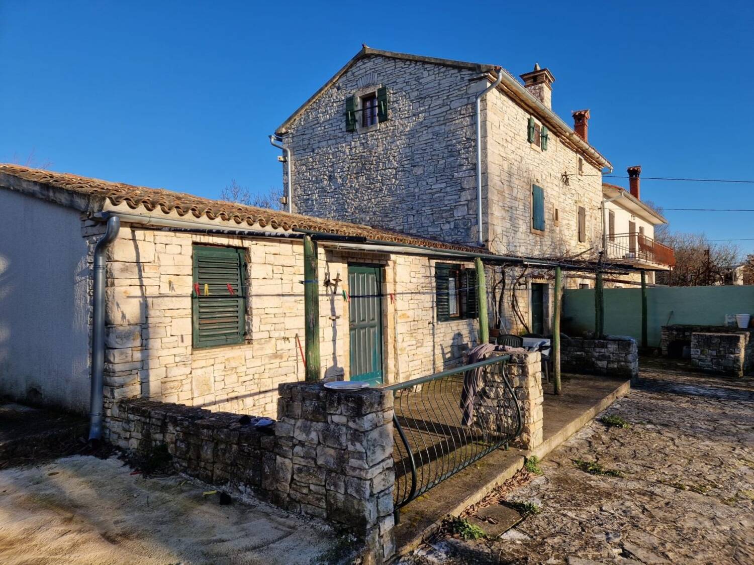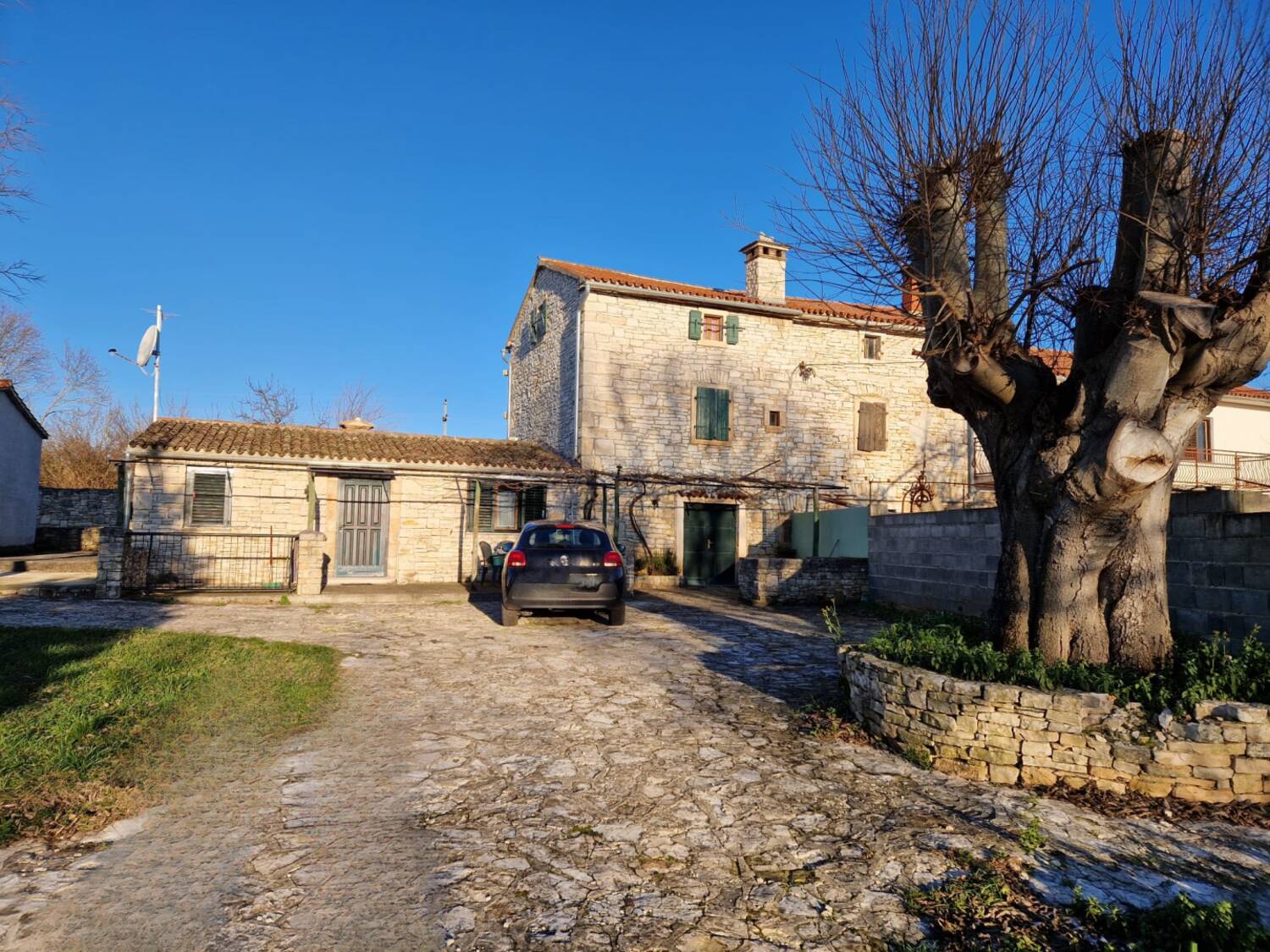 Kamena kuća uređena je u rustikalnom stilu (drvo i kamen) te se prodaje namještena. Okućnica kuće broji ca. 700m2 te s