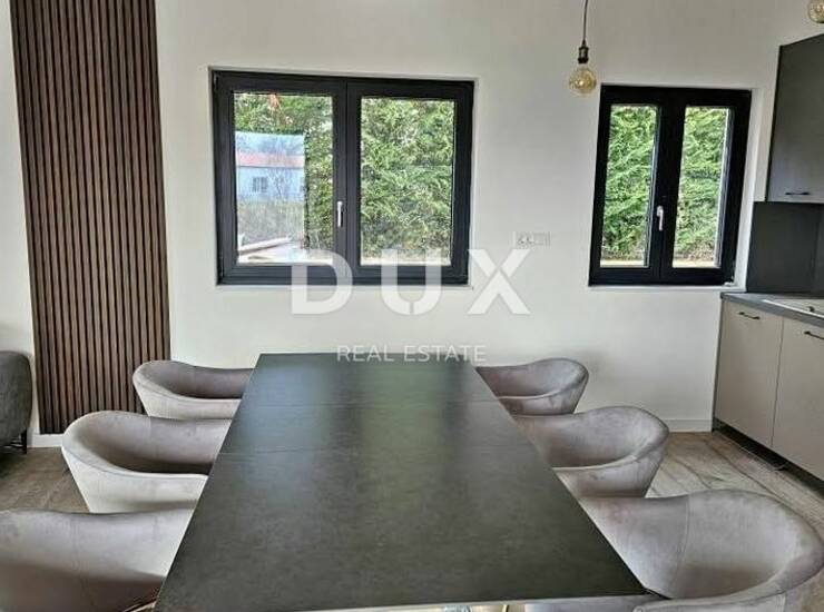 Iz dnevnog boravka izlazimo na natkrivenu terasu koja je povezana s okućnicom površine 548 m2, na kojoj se smjestio bazen za uživanje u ljetnim mjesecima.