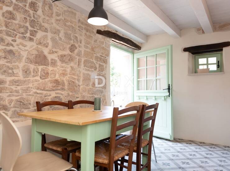 U pitoresknom selu nedaleko Svetvinčenta u ponudi imamo autohtonu istarska kamenu kuću. Proteže se kroz 3 etaže. U prizemlju se smjestila kuhinja te dnevni boravak iz kojeg se izlazi na stražnji dio kuće gdje se nalazi manja terasa. Na prvoj etaži nalazi se hodnik, kupaonica i jedna spavaća soba koja ima i zaseban ulaz sa bočne strane kuće. Tu je još i jedna spavaća soba smještena u potkrovlju.